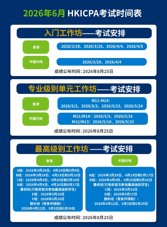 成功注册成为学生后,紧盯官方发布的正式香港CPA 2026年6月考期安排,才能精准安排学习和复习计划。以下是基于公会《时间表》信息的结构化梳理: